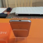 Plus bas, le logo Xiaomi (mi), la certification CE et la grille du haut-parleur surmontée d’un petit picot.