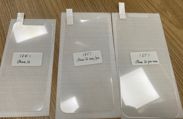 D’un autre côté, la marque Rainbow nous fait parvenir une photo montrant 3 protections d’écran destinées à la future gamme iPhone 12.