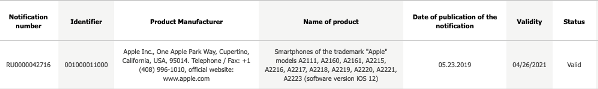 L’ensemble des références internes de l’iPhone XI 2019 ont été listées sur la base de données de l’Eurasian Economic Commission.