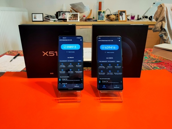 Face à Antutu Benchmark (v9), le VIVO X51 a obtenu un score de 398.913 points, alors que le VIVO X60 Pro a obtenu un score de 639.416 points.