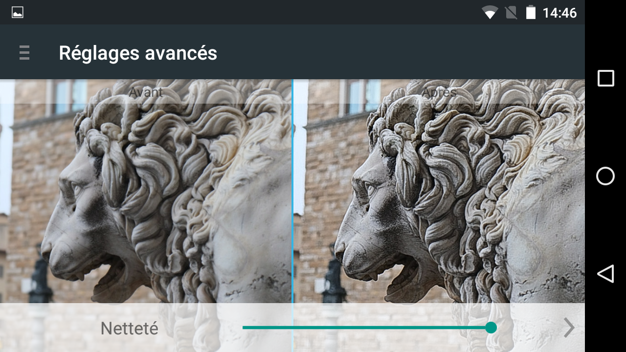 Quelle belle surprise que cet écran AMOLED ! Même si la technologie a déjà quelques années, le rendu reste toujours aussi sympathique. Une luminosité non agressive, des couleurs chatoyantes légèrement saturées par défaut et des angles de vue tous simplement excellents. Avec une diagonale de 4,8 pouces et une résolution 720p (1080×720 pixels) soit une densité de 306 ppp, Wiko a trouvé le compromis idéal pour un bon confort visuel.