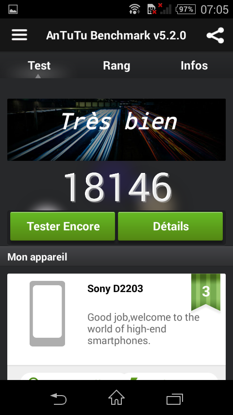 L’appareil est fluide, aucun problème de réactivité constaté. Le S400 et l’Adreno 305 devraient assurer de bonnes performances et faire tourner la plupart des jeux.
