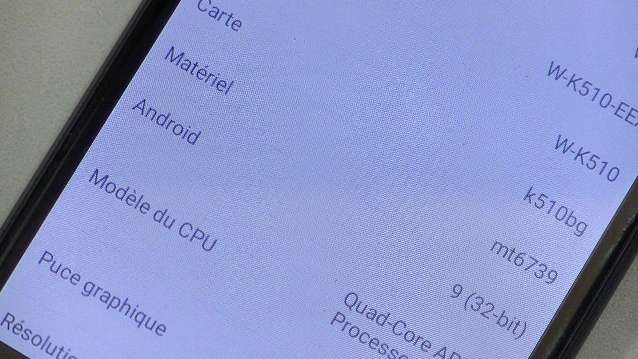 - Processeur : Quatre coeurs 1,3GHz (MediaTek MT6739WA) | Mémoire vive : 1Go | Processeur graphique : PowerVR GE8100.