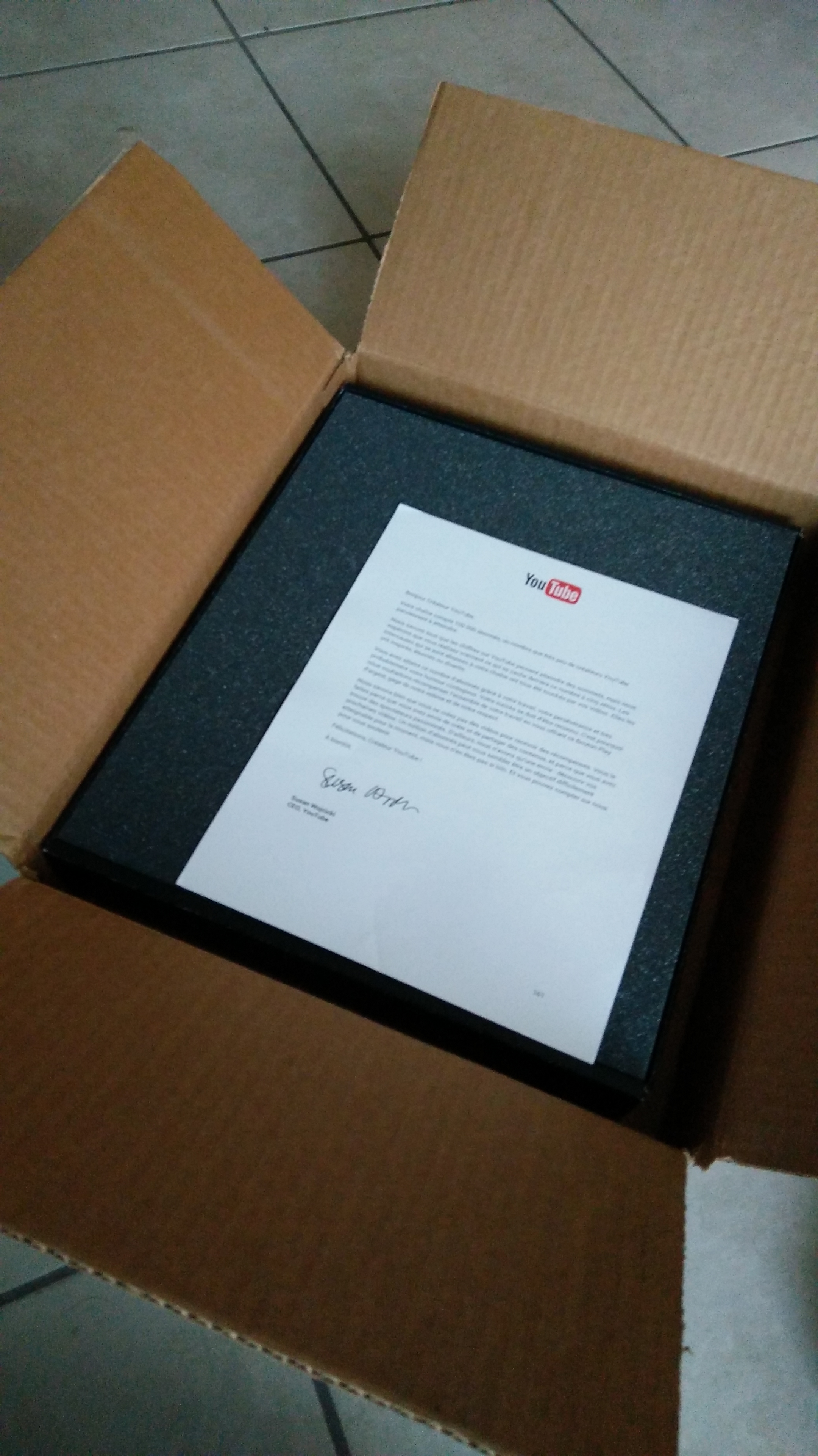 Et le « trophée », généralement appelé le Youtube Silver Play Button, nous a bien été remis.